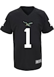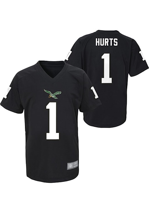 Let your little Eagles fan show support for their favorite player in this Youth Jalen Hurts Short Sleeve Player Tee. This Black Short Sleeve Player T-Shirt features a screen printed team name and player number on the front and player name, number, and team logo on the back.