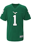 Let your little Eagles fan show support for their favorite player in this Youth Jalen Hurts Short Sleeve Player Tee. This Kelly Green Short Sleeve Player T-Shirt features a screen printed team name and player number on the front and player name, number, and team logo on the back.