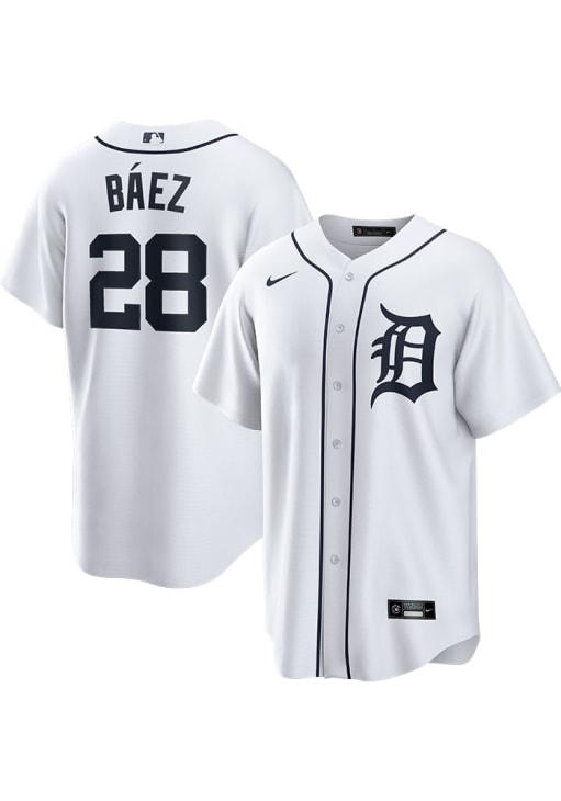 This Detroit Tigers Jersey is designed to give an on-field look at a superior value. The White Baseball Jersey delivers comfort and breathability in a lighter wicking fabric for a genuine game-ready look. You'll be the best-looking fan in the stadium when you pull on this Detroit Tigers Jersey, which features a twill team wordmark across the front, replica team markings, MLB logo on back below the neck, locker tag at left lower hem, Swoosh at right chest. Go Tigers!