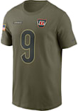 Show support for your favorite player in this Cincinnati Bengals Olive Salute to Service Joe Burrow Short Sleeve Player Tee! This Player T Shirt features a screen printed number on the chest, team decorations, and screen printed player name and number on the back, so everyone will know you cheer for Cincinnati, Joe Burrow! This is the perfect Bengals Player Tee for wearing from every day to game day. Go Bengals!!