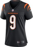 Feel like one of the team with this Cincinnati Bengals Womens Black Home Game Football Jersey. Wear this Jersey to the next tailgate or game for your Bengals. With a polyester game replica jersey material with mesh side panels, tagless neckline, and screen printed player name and number graphics, this Womens Football Jersey is a great way to show your team spirit in style.