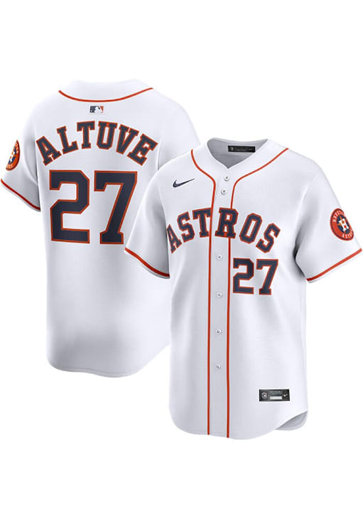 Get a piece of the Astros action with this Houston Astros White Home Limited Baseball Jersey. You'll look like one of the team as you wear this to support your Astros. With a Short sleeve button front jersey with full chest sublimated twill team wordmark. Recycled sublimated twill front numbers, back player name & number and sleeve patch where applicable. Direct embroidery swoosh. Recycled woven heat applied front jock tag. Heat applied neck label., this Limited Baseball Jersey makes a great addition to any Astros fan's closet.