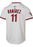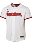 Your little Guardians fan will look great cheering on the Cleveland Guardians in this White Youth Baseball Jersey. This Cleveland Guardians Jersey features a twill team wordmark across the front with faux stitch number, sublimated twill player name and number on the back, faux stitch team logo on sleeve, heat seal locker tag, and woven Swoosh design on right chest.