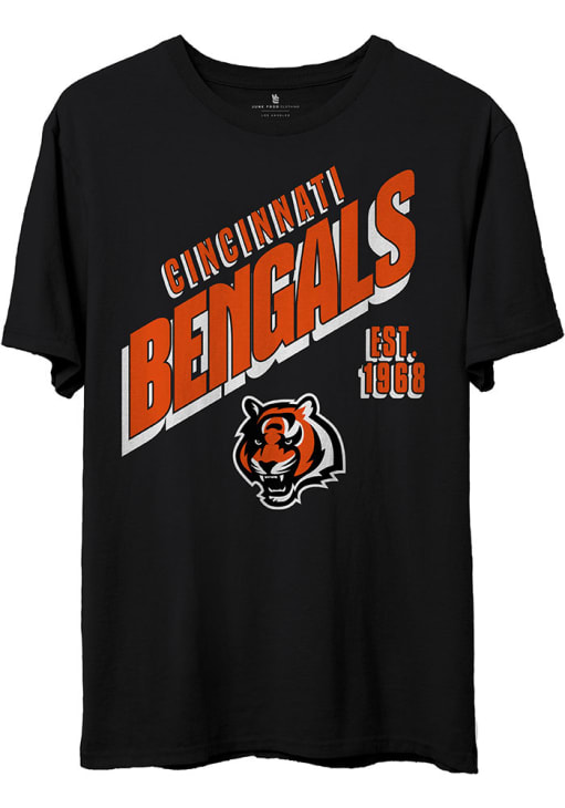 Show off your team pride in this Cincinnati Bengals Black NFL SLANT Short Sleeve T Shirt! This Cincinnati Short Sleeve Tee features a slanted screen printed team logo. Make sure everyone knows you root for the Bengals with this Black Cincinnati T Shirt. Go Bengals!!