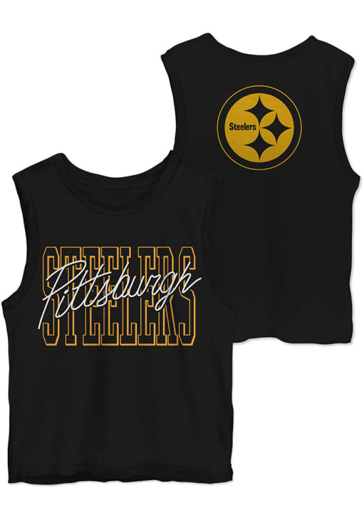 Give your tailgating look a cute update with this Pittsburgh Steelers Womens Tank Top! Look good and stay cool in this Black Timeout Sleeveless Shirt. This Pitt Steelers Tank Top features a center front and back team name and graphic softhand screen print.