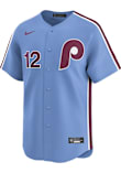 Get a piece of the Phillies action with this Philadelphia Phillies Light Blue Alt 2024 Limited Baseball Jersey. You'll look like one of the team as you wear this to support your Phillies. With a Short sleeve button front jersey with full chest sublimated twill team wordmark. Recycled sublimated twill front numbers, back player name & number and sleeve patch where applicable. Direct embroidery swoosh. Recycled woven heat applied front jock tag. Heat applied neck label., this Limited Baseball Jersey makes a great addition to any Phillies fan's closet.