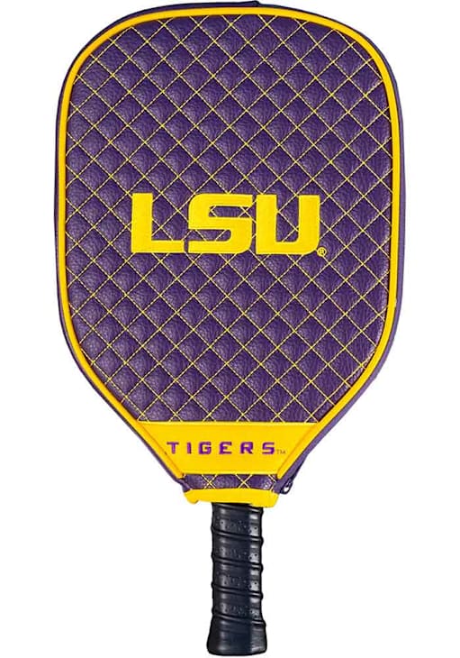 Product Details Product Details Durable PU faux leather exteriorEmbroidered Wordmark, Logo, and Quilted paternVelour lining for added protectionLong zipper for easy on and offFits virtually all paddles on the market Officially Licensed Bring your LSU Tigers pride during a game of ping pong with these LSU Tigers Pickleball Paddles. These Pickleball Paddles, which feature a team logo, will look great in your game room, too! Fight, Tigers!