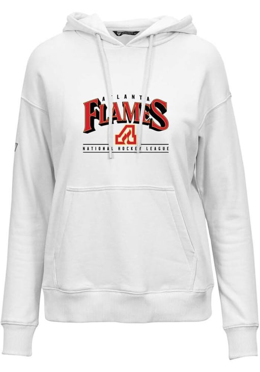 Wear your Flames spirit with pride in this Atlanta Flames Long Sleeve Hoodie! Fight off the chill in this Atlanta Flames Womens White Adorn Vintage Spellout Hooded Sweatshirt. This Flames Long Sleeve Hoodie features kangaroo pocket for extra storage and a drawstring hood.