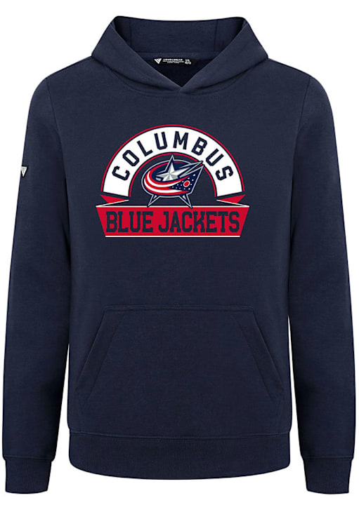 Those cold nights at the game won't keep your little Columbus fan from cheering on the team in Columbus Blue Jackets Long Sleeve Hoodie! Give them this Columbus Blue Jackets Youth Navy Blue Podium Jr Banner Arch Hooded Sweatshirt to keep warm in the stands. This Blue Jackets Long Sleeve Hoodie features a oversized kangaroo pocket and soft cotton fabric blend.