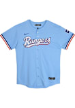 Hit your Texas Rangers pride out of the park with this Texas Rangers Boys Light Blue Alt. 1 Limited Blank Jersey! You'll be the best-looking fan in the stadium when you pull on this Texas Rangers Baseball Jersey, which features a twill team wordmark across the front, player name and number on the back, heat seal locker tag, and Swoosh design on right chest. Go Rangers!
