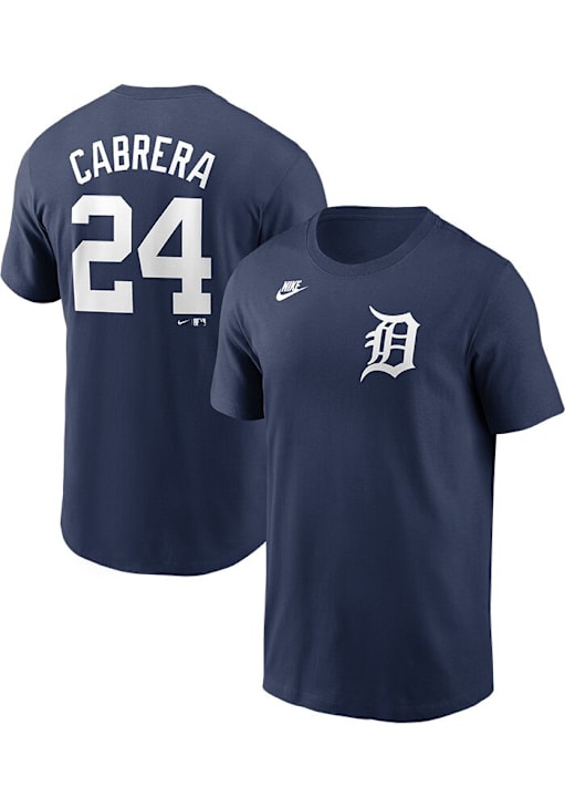 Show support for your favorite player in this Detroit Tigers Navy Blue Home Miguel Cabrera Short Sleeve Player Tee! This Player T Shirt features a screen printed team wordmark on the front chest, Swoosh design on the right shoulder, player name and number across the back, so everyone will know you cheer for Detroit Tigers, Miguel Cabrera! This is the perfect Tigers Player Tee for wearing from every day to game day. Go Tigers!
