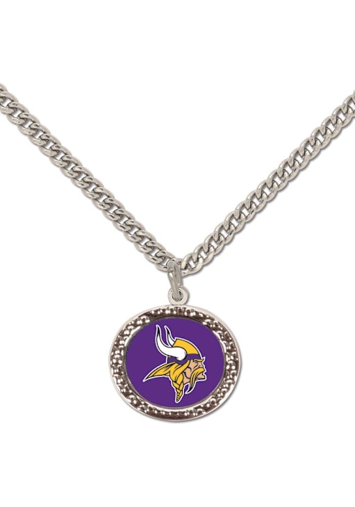 Product Details Product Details Necklace measures approx. 18.5"Easy to use lobster claspFull color enamel team logoPerfect for game day!100% Zinc AlloySurface washableImported Officially Licensed Add some Minnesota gear to your jewelry collection with this Minnesota Vikings Hammered Logo Necklace! It features a team color with team logo, so everyone will know how much you love your Vikings!