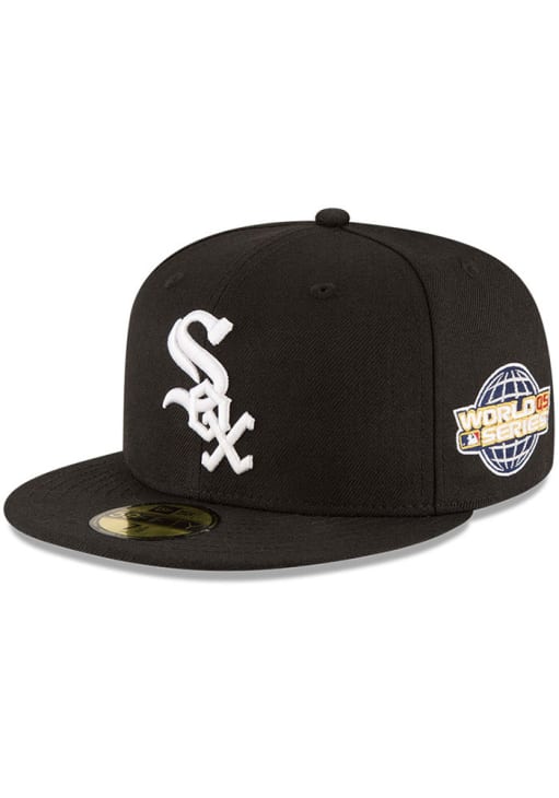 This Chicago White Sox Black Fitted Hat features a front era-specific team logo with a side patch from a World Series winning season. You'll be ready to show your White Sox pride with this Cap! Go White Sox!!
