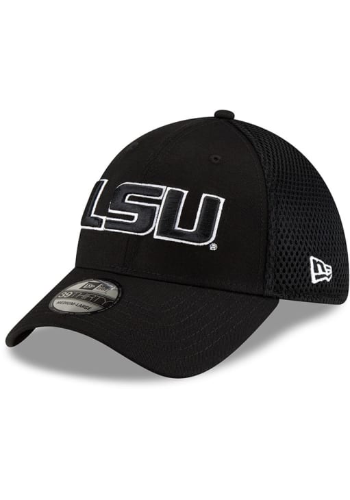Pull on this LSU Tigers Black and White Logo 39THIRTY Black Flex Hat just in time for the game! This LSU Tigers Flex Hat features a front tonal black and white team logo on a black structured crown with matching black flexible spacer mesh.