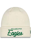 Show off your team pride and style in this Philadelphia Eagles New Era Ivory Retro Script Cuff Knit Hat! This Philadelphia Knit Hat features a front embroidered cuff logo, so now everyone will know how much you love your Eagles. Go Eagles!