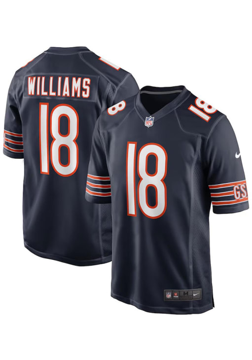 Get a piece of the Chicago Bears Bears action with this Chicago Bears Navy Blue Caleb Williams Home Football Jersey. You'll look like one of the team as you wear this Jersey to support your Bears. With a screen printed number on the chest, team decorations, and screen printed player name and number on the back, this Football Jersey makes a great addition to any Bears fan's closet.