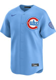 Get a piece of the Cubs action with this Chicago Cubs Light Blue Alt Limited Baseball Jersey. You'll look like one of the team as you wear this to support your Cubs. With a Short sleeve button front jersey with full chest sublimated twill team wordmark. Recycled sublimated twill front numbers, back player name & number and sleeve patch where applicable. Direct embroidery swoosh. Recycled woven heat applied front jock tag. Heat applied neck label., this Limited Baseball Jersey makes a great addition to any Cubs fan's closet.