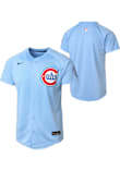 Your little Cubs fan will look great cheering on the Chicago Cubs in this Light Blue Youth Baseball Jersey. This Chicago Cubs Jersey features a twill team wordmark across the front, heat seal locker tag, and Swoosh design on right chest.
