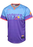 Your little Rockies fan will look great cheering on the Colorado Rockies in this Light Blue Youth Baseball Jersey. This Colorado Jersey features a twill team wordmark across the front, heat seal locker tag, and Swoosh design on right chest.