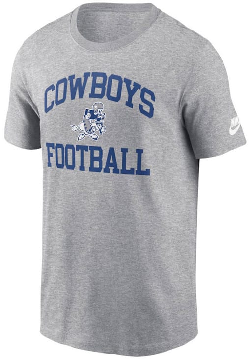 Show off your team pride in this Nike Dallas Cowboys Grey Rewind Logo Essential Short Sleeve T Shirt! This Cowboys Short Sleeve Tee features a arch team name and retro logo on chest. Make sure everyone knows you root for the Cowboys with this Grey Cowboys T Shirt. Go Cowboys!!
