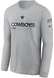Show off your team pride in this Dallas Cowboys Grey Salute to Service Long Sleeve T Shirt! This Cowboys Long Sleeve Tee features a team name and logo on chest, Salute to Service graphic on sleeves. Make sure everyone knows you root for the Cowboys with this Grey Cowboys T Shirt. Go Cowboys!!