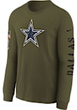 Give your little Cowboys fan a new way to show their support with this Dallas Cowboys Olive Long Sleeve T-Shirt. This Salute To Service Team Logo T-Shirt features a high density screen print team logo that will look good in the stadium or around town.