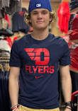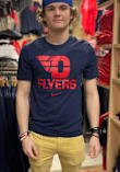 Show off your team pride in this Nike Dayton Flyers Navy Blue Dri-FIT Name Drop Short Sleeve T Shirt! This Dayton Short Sleeve Tee features a screen print team logo with Dayton flat below. Make sure everyone knows you root for the Flyers with this Navy Blue Dayton T Shirt. Go Flyers!!