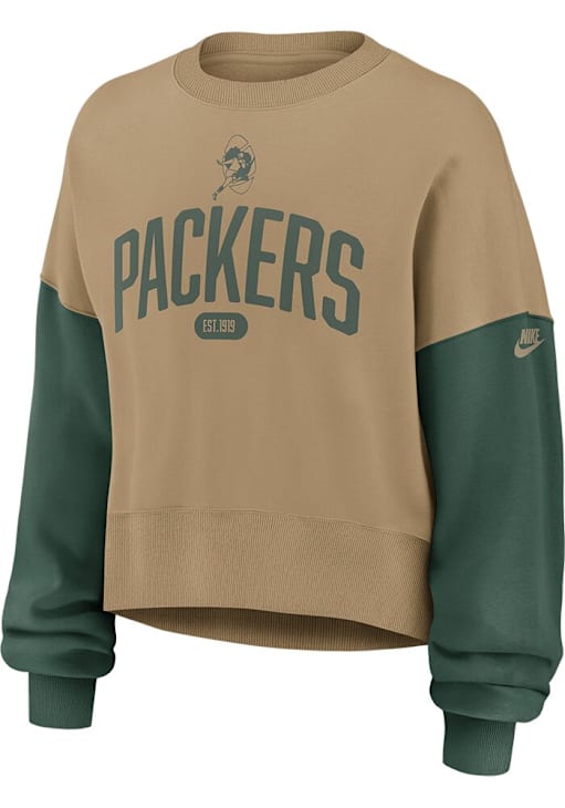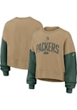 Make your way to the big game in this Green Bay PackersWomens Tan Rewind Crew Sweatshirt! This Packers Long Sleeve Sweatshirt features a center front silicone and water based print team name and logo. Stay warm and comfortable with this Womens Green Bay Packers Crew Sweatshirt.