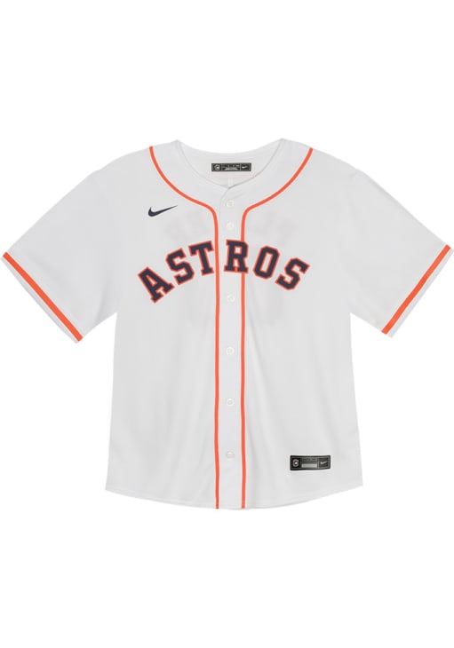 Dress out your future Houston Astros fan in this Houston Astros Toddler White Baseball Jersey! This Houston Jersey features a twill team wordmark across the front, heat seal locker tag, and Swoosh design on right chest. You'll have the cutest Astros fan at the ballpark.