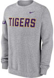 Head out in style with our LSU Tigers Grey Club Fleece Crew Sweatshirt! This Tigers Long Sleeve Crew Sweatshirt features a wordmark on front chest and logo on right sleeve. You'll be warm, comfortable and stylish as you head to class, the game or just out on the town in this LSU Crew Sweatshirt.