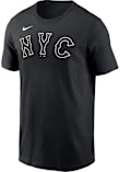 Show off your team pride in this Nike New York Mets Black City Connect Short Sleeve T Shirt! This NY Mets Short Sleeve Tee features a screen printed team wordmark on the front chest, Swoosh design on the right shoulder. Make sure everyone knows you root for the Mets with this Black NY Mets T Shirt. Go Mets!