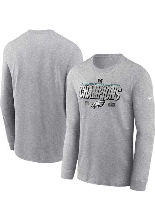 Show off your team pride in this Philadelphia Eagles Grey 2024 Conference Champions Long Sleeve T Shirt! This Philadelphia Long Sleeve Tee features a team graphic on center chest. Make sure everyone knows you root for the Eagles with this Grey Philadelphia T Shirt. Go Eagles!