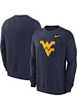 Head out in style with our West Virginia Mountaineers Navy Blue Primary Logo Crew Sweatshirt! This Mountaineers Long Sleeve Crew Sweatshirt features a sreenprint team graphic on front chest. You'll be warm, comfortable and stylish as you head to class, the game or just out on the town in this WVU Crew Sweatshirt.