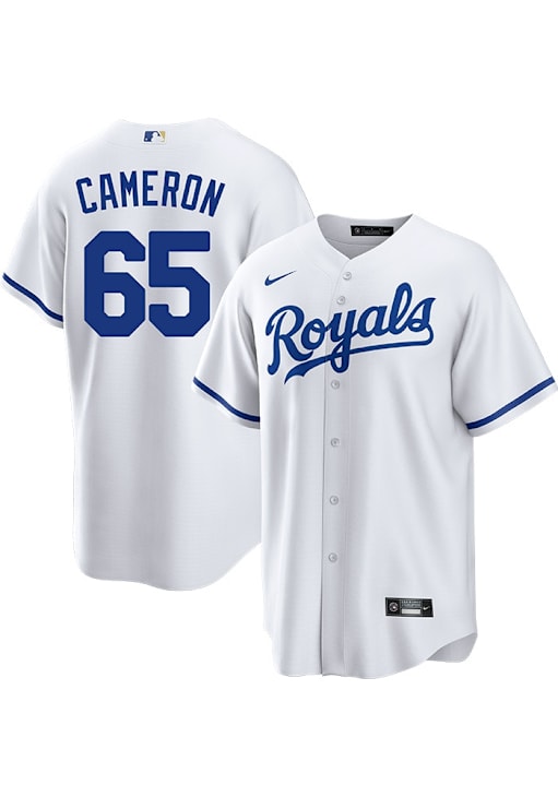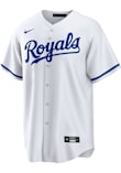 This Kansas City Royals Jersey is designed to give an on-field look at a superior value. The White Baseball Jersey delivers comfort and breathability in a lighter wicking fabric for a genuine game-ready look. You'll be the best-looking fan in the stadium when you pull on this KC Royals Jersey, which features a twill team wordmark across the front, replica team markings, MLB logo on back below the neck, locker tag at left lower hem, Swoosh at right chest. Go Royals!