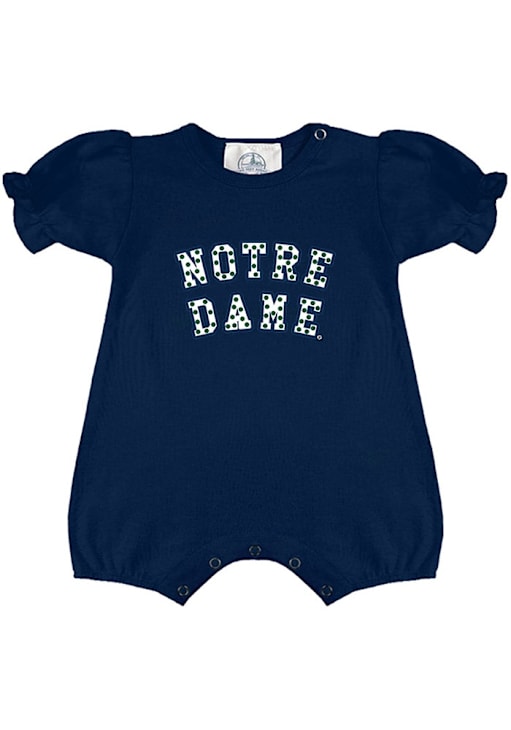 Your future Fighting Irish fan will look cute in this Notre Dame Fighting Irish Baby Navy Blue Bubble One Piece! This Fighting Irish Romper features a mascot embroidery on center chest.
