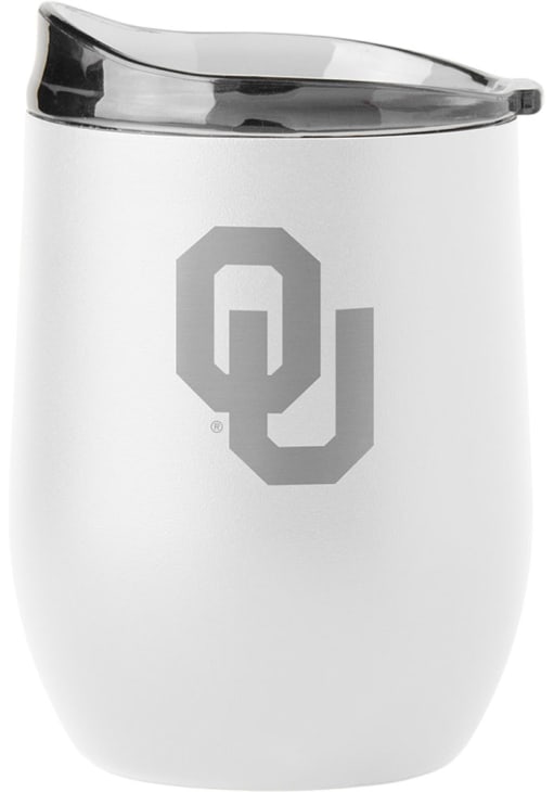 Oklahoma Sooners 16oz Etch White Powder Coat Curved Beverage Stainless Steel Stemless - White