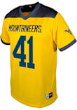 Get a piece of the WVU Mountaineers action with this West Virginia Mountaineers Gold Oliver Straw Football NIL Football Jersey. You'll look like one of the team as you wear this Jersey to support your Mountaineers. With a embroidered logo, player name and number, this Football Jersey makes a great addition to any Mountaineers fan's closet.