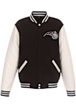 - Soft-to-the-touch polyester fleece body with a faux leather sleeves and nylon shell reverse side