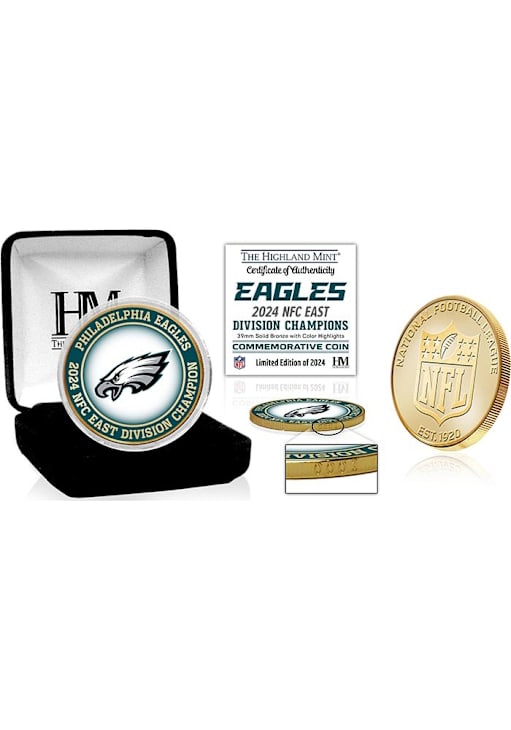 Product Details Product Details 39mm solid bronze coinColored team logo embedded on one sideLeague logo on one sideLimited editionEach coin is individually numbered on its edgeCoin protected in clear capsule to preserve conditionUSA Officially Licensed This Philadelphia Eagles 2024 Division Champions Coin Collectible is a fantastic addition to your Eagles collection. These Coin feature a Certificate of Authenticity.