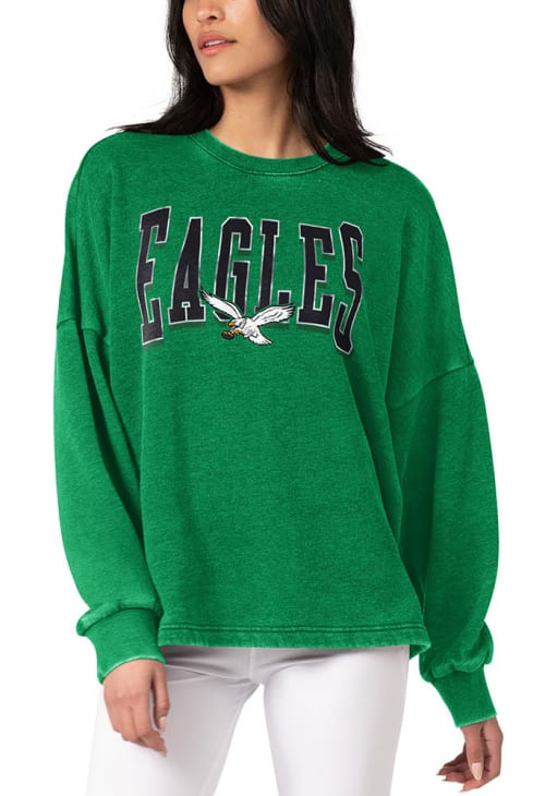 Make your way to the big game in this Philadelphia EaglesWomens Kelly Green Burnout Foil Crew Sweatshirt! This Eagles Long Sleeve Sweatshirt features a screen print team name and logo on center front. Stay warm and comfortable with this Womens Philadelphia Eagles Crew Sweatshirt.