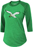 Size Chart for Philadelphia Eagles Womens Kelly Green Throwback Raglan LS Tee