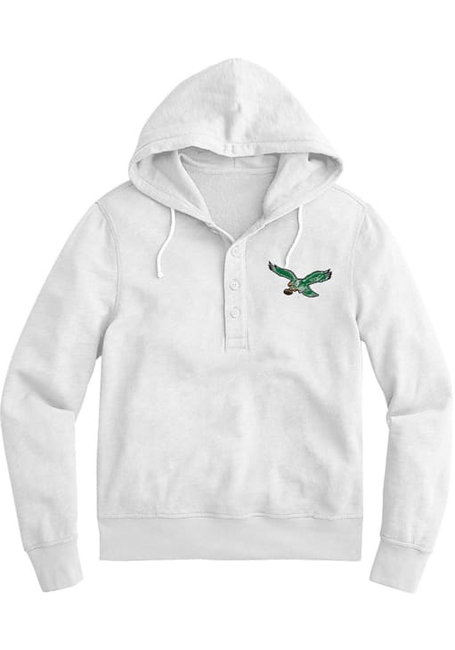 Wear your Eagles spirit with pride in this Philadelphia Eagles Long Sleeve Hoodie! Fight off the chill in this Philadelphia Womens White Henley Hooded Sweatshirt. This Eagles Long Sleeve Hoodie features team logo on left chest.