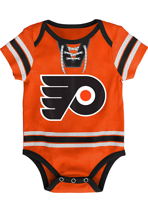 Your future Flyers fan will look cute in this Philadelphia Flyers Baby Orange Hockey Pro Blank One Piece! This Philadelphia Romper features a soft hand screen print team graphic.