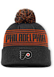 Show off your team pride and style in this Philadelphia Flyers Black Enforcer Cuff Pom Knit Hat! This Philadelphia Knit Hat features a front team logo, so now everyone will know how much you love your Flyers. Go Flyers!