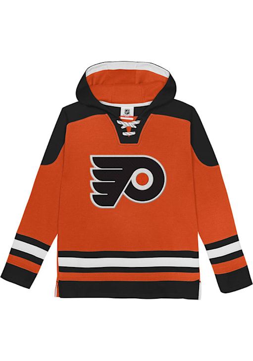 Put your Flyers spirit on display in this Philadelphia Flyers Long Sleeve Hoodie! You'll be cozy for school in this Philadelphia Boys Orange Ageless Hooded Sweatshirt. This Flyers Long Sleeve Hoodie features a tackle twill applique with zig zag stitch. Wear your Philadelphia Flyers spirit with pride in this great Boys Hooded Sweatshirt!