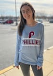 Display your Philadelphia Phillies spirit in this Phillies Light Blue T-Shirt! This Phillies Boyfriend Long Sleeve T-Shirt makes a great layer for cooler nights cheering on the Phillies. Featuring a center front screen print team name and logo, this Philadelphia Phillies Long Sleeve LS Tee is a must-have for any fan. Go Phillies!!