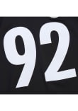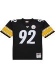 Get a piece of the Pitt Steelers Steelers history with this vintage Black Pittsburgh Steelers Throwback Throwback Jersey. You'll look like one of the historically great teams as you wear this Jersey to support your Steelers. With a polyester dazzle sleeves and yoke, twill sleeve and back numbers, and embroidered felt name and year ID patch, this Throwback Jersey makes a great addition to any Steelers fan's closet.