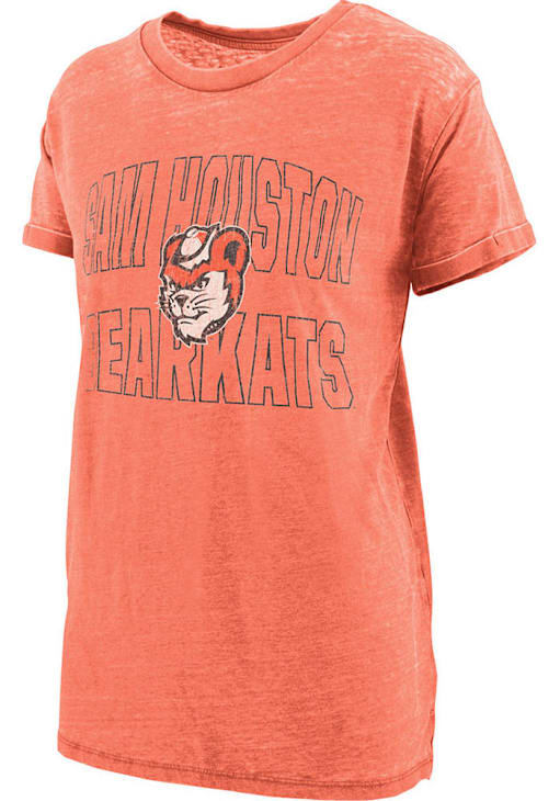 Let everyone know who you root for in this Sam Houston State Bearkats Orange Maxine Short Sleeve T-Shirt! This Sam Houston State Univesity Short Sleeve Tee features a screen print team name and logo on center chest.