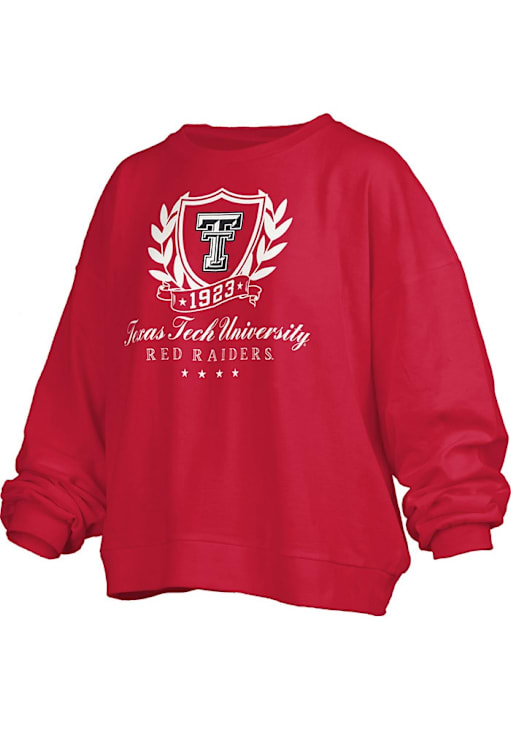 Make your way to the big game in this Texas Tech Red RaidersWomens Red Big Aug Janise Crew Sweatshirt! This Red Raiders Long Sleeve Sweatshirt features a embroidered team name and logo on center chest. Stay warm and comfortable with this Womens Texas Tech Red Raiders Crew Sweatshirt.