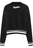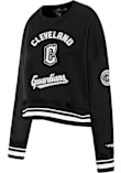 Make your way to the big game in this Cleveland GuardiansWomens Black Pearl Crew Sweatshirt! This Guardians Long Sleeve Sweatshirt features a team name applique with pearled team logo on center front. Stay warm and comfortable with this Womens Cleveland Guardians Guardians Crew Sweatshirt.
